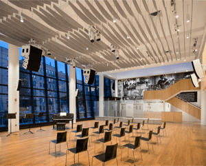 The thorough modernization of the gallery space renders it one of the best performance/music venues in the city. It allows optimized use of the space for a wide range of events while providing students a professional performance environment that will drive their creativity and motivate them to excel.