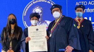 During the award ceremony in Caracas – the Venezuelan capital, the Rector of UVB, Sandra Oblitas, said  Gonsalves is an undisputed leader of the Caribbean and highlighted the merits of his political, academic, cultural, and humanist career in favor of the emancipation of his people and the struggle “for their dignity and true social justice…