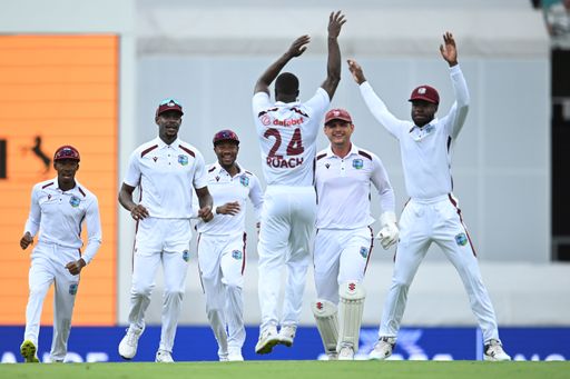 The wickets of the beanpole Cameron Green caught at mid-off for eight and first Test century-maker Travis Head caught behind for a first-ball duck off successive deliveries from Roach in the final over before dinner reduced the Aussies to 24 for four.