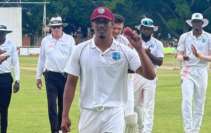 Jason Holder (3) edged the very first ball of the day from seamer Victor Nyauchi (5-56) to be caught at the wicket, and Motie holed out in the bowler’s next over for 12 to leave the 30-year-old with his maiden five-wicket haul in Tests.