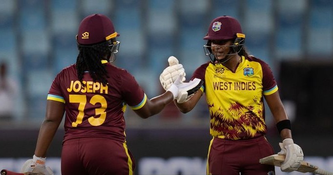 Qiana Joseph (left) and West Indies captain Hayley Matthews both scored half centuries to lead their team to victory over England.