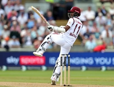 Brathwaite was left unbeaten on 56, and the Caribbean side wobbled to 97 for three in their first innings at the interval on the first day of the match at Edgbaston after they won the toss and decided to bat.