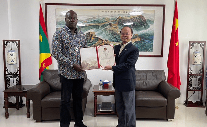 A virtual ceremony to announce the recognition was done in November 2022, but the medal was presented to him at the Chinese Embassy in Grenada on Wednesday.