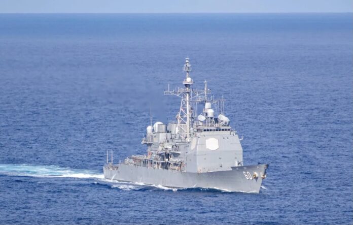 GEORGETOWN, Guyana, CMC – The US Navy cruiser USS Normandy and the Guyana Defence Force patrol vessel Shahoud are engaged in joint military exercises in international waters and Guyana’s Exclusive Economic Zone (EEZ).