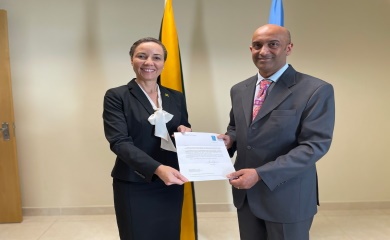 KINGSTON, Jamaica, CMC – The newly appointed United Nations Development Programme (UNDP) for Jamaica, Kishan Khoday, Friday presented his credentials to Foreign Affairs and Foreign Trade Minister Kamina Johnson Smith.