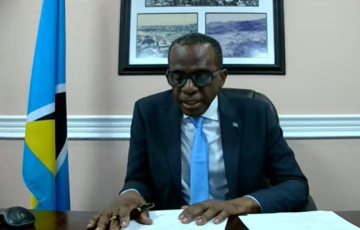 St. Lucia Prime Minister speaking during Jamaica visit alongside government officials