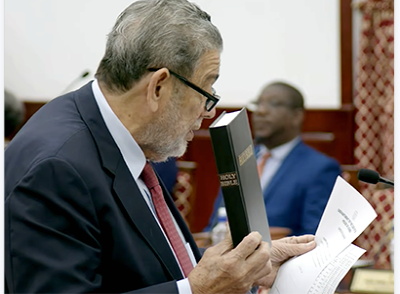 Gonsalves, whose Unity Labour Party’s (ULP) 24-year reign ended in a crushing 14-1 defeat in the Nov. 27 polls. He took the oaths one day after House Speaker Ronnia Durham-Balcombe barred him from attending a meeting of a committee of Parliament, because he had yet to take the relevant oaths.