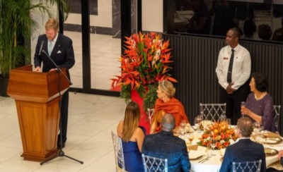 At the end of his speech, the King quoted the poet Dobru and asked those present to raise their glasses “to the Republic of Suriname, to the health of the president, and to the friendship between Suriname and the Netherlands”.