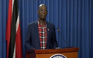 Prime Minister Dr. Keith Rowley addressing a news conference on Thursday (CMC Photo)