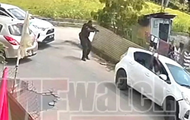 The footage was taken from a surveillance camera mounted at a Hindu temple opposite the scene. Last Tuesday, Police Commissioner Allister Guevarro, in a voice recording, described the incident as an “exchange of gunfire”: